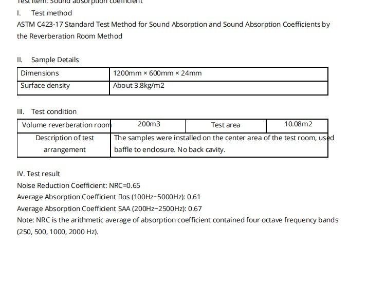 Tested Performance of 24mm PET Panel (Direct Wall Mounting)