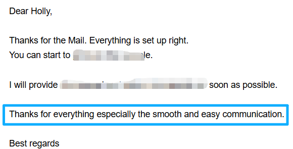 Clear communication saves time, cost, and unnecessary stress on both sides. This point is very important especially when any factors cause change during order-follow-up, immediate solutions/proposal will be disscussed on time. Never let clients know the changes or issues at last minute.